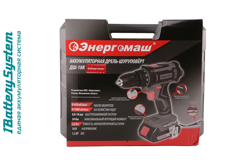 Аккумуляторный шуруповерт Энергомаш ДШ-18К 1BatterySystem