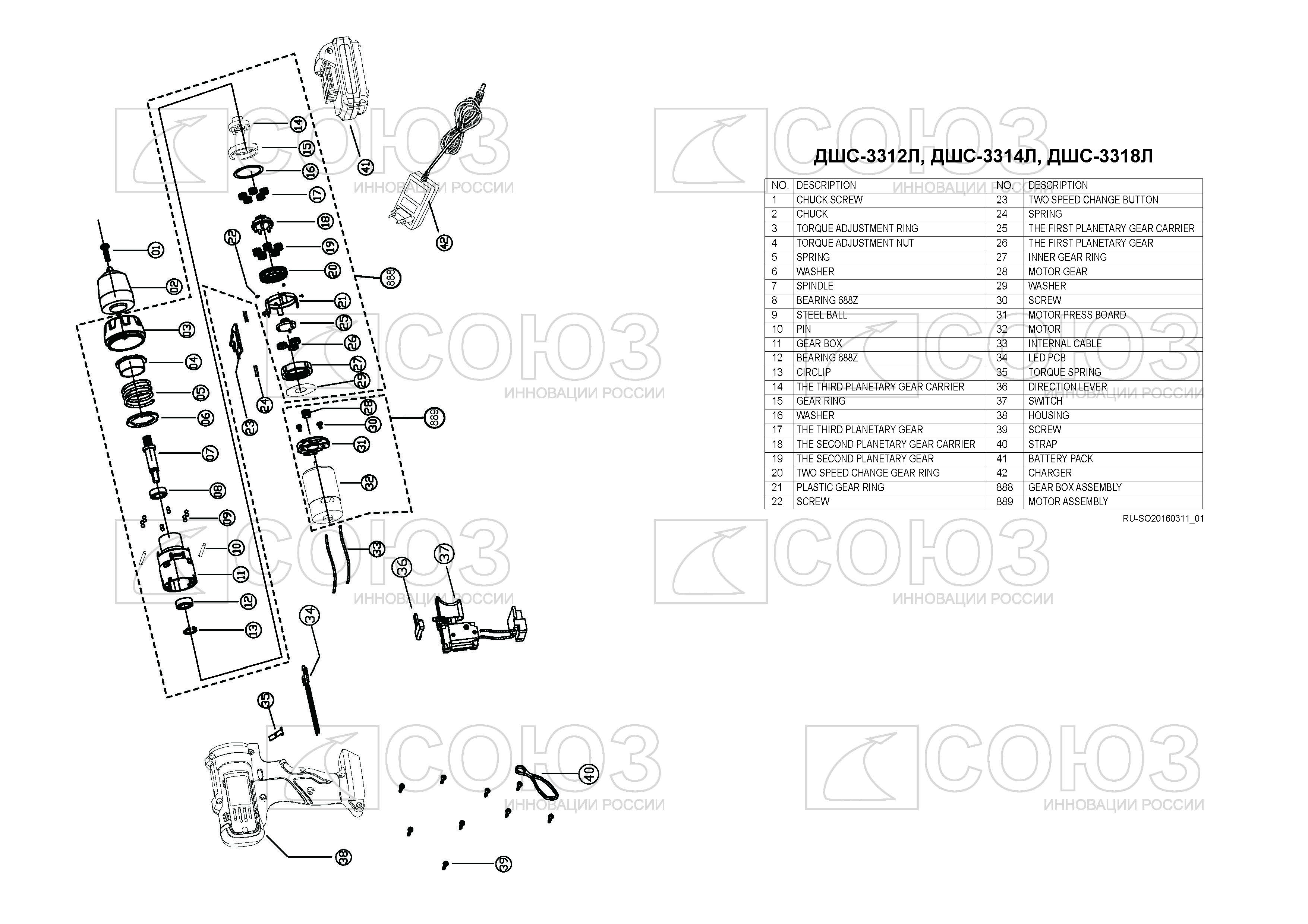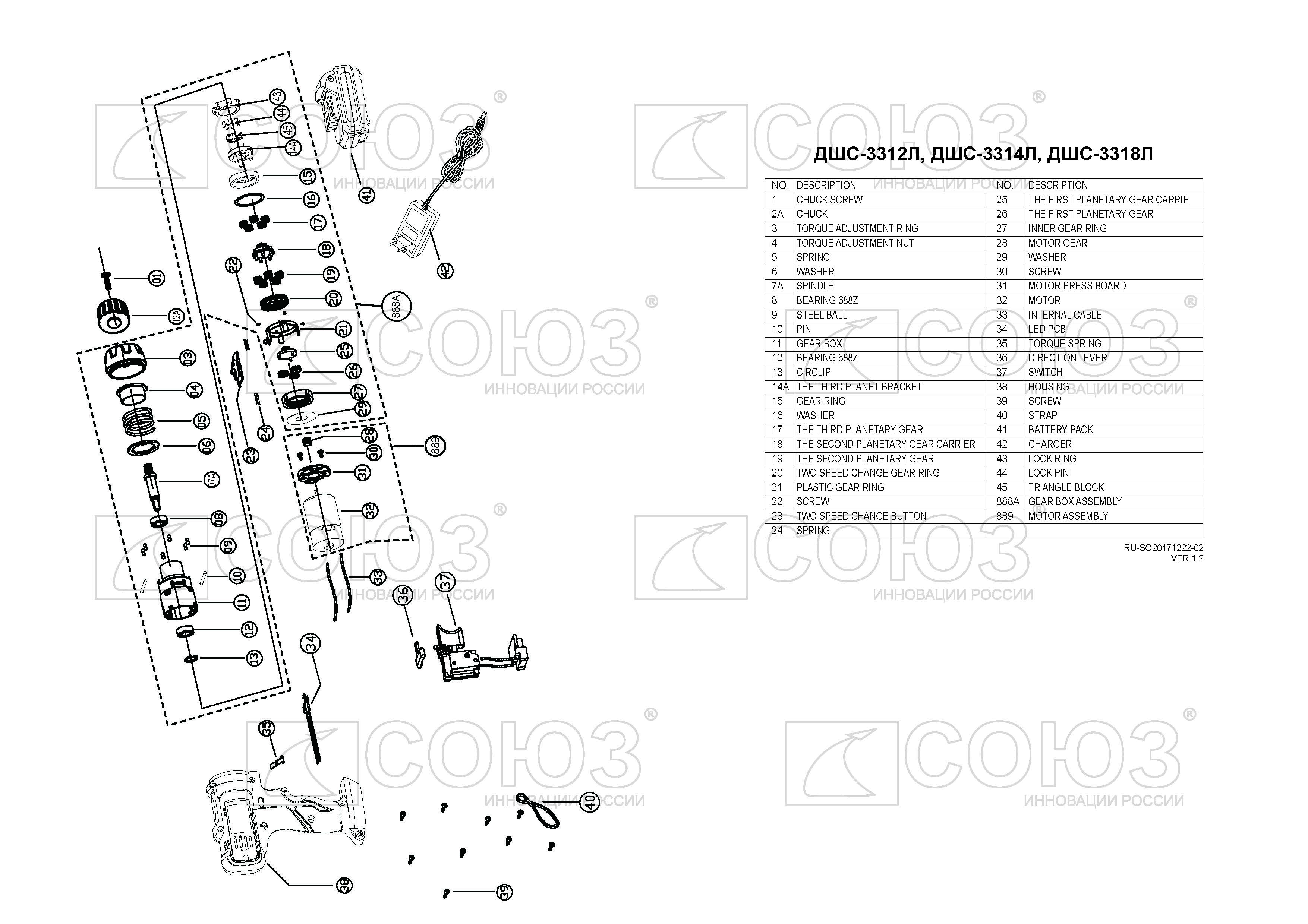 Аккумуляторный шуруповерт СОЮЗ ДШС-3312Л