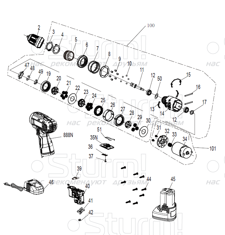 Аккумуляторный шуруповерт Sturm! CD3318LPT