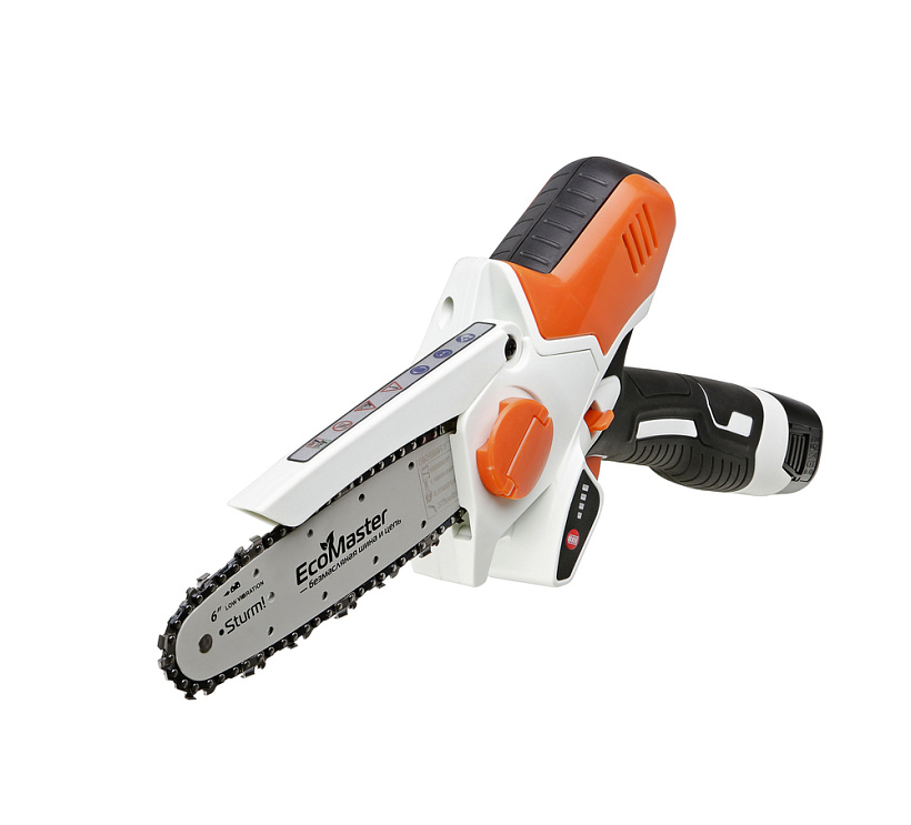 Аккумуляторная цепная пила Sturm! CSC18061 прекрасно справится с обрезкой веток деревьев и простыми столярными работами.