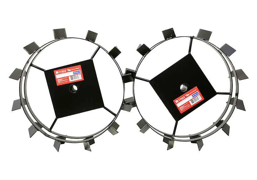 Грунтозацепы для мотоблока СОЮЗ БМ1С-26-500-130 используются в качестве замены резиновых колес и обеспечивают сцепление с грунтом при работе мотоблока. Колеса выполнены в виде нескольких полос металла со вваренными в середину листами металла. На такие колеса почва не налипает, выдавливаясь в пустоты между лентами. В результате сцепление с грунтом будет выше. Диаметр ступицы 30 мм, диаметр грунтозацепа 500 мм, ширина 130, количество ободов 2, высота зацепа 30мм.