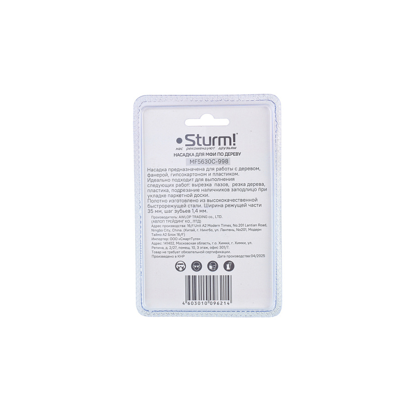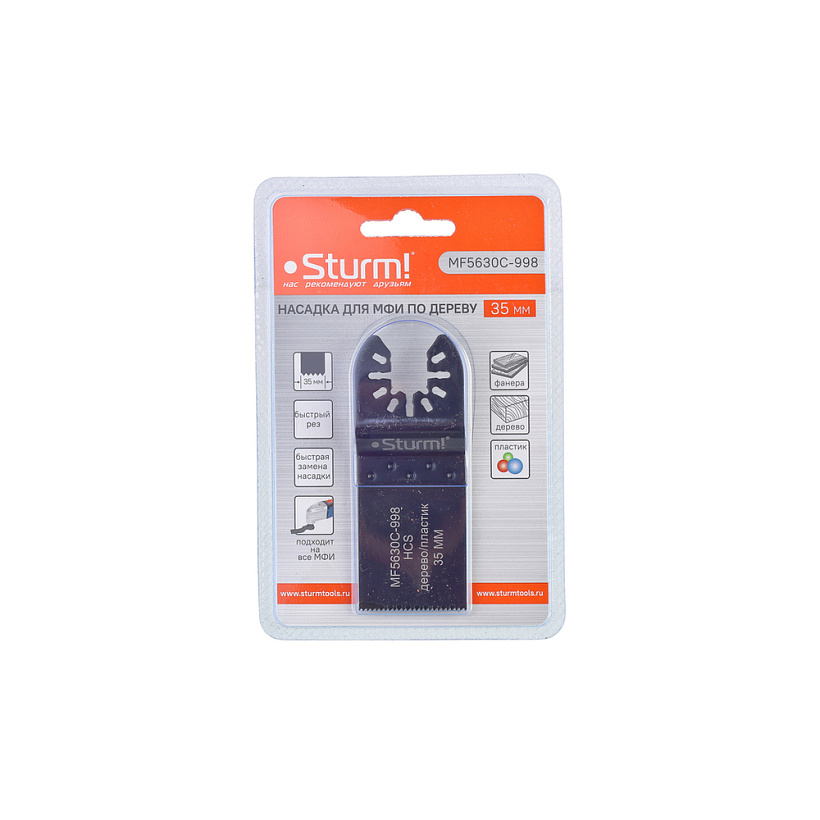 Аксессуар для пил Sturm! MF5630C-998. Насадка предназначена для обработки дерева, фанеры и пластика. Идеально подходит для выполнения следующих работ: вырезка пазов, резка дерева, пластика, подрезание наличников заподлицо при укладке паркетной доски. Полотно изготовлено из высококачественной быстрорежущей стали. Ширина режущей части 35 мм, шаг зубьев 1,4 мм.