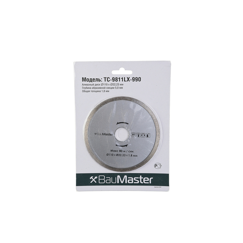 Алмазный диск baumaster, диам. 110x22.23 мм, сплошной
