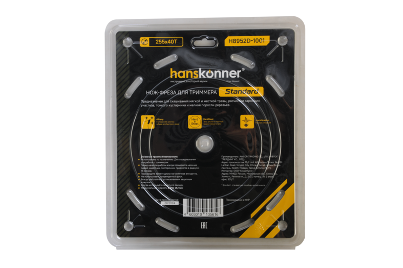 Фреза для бензотрим., Standard 255мм x 25,4x40, с тверд. Напайк., Hanskonner