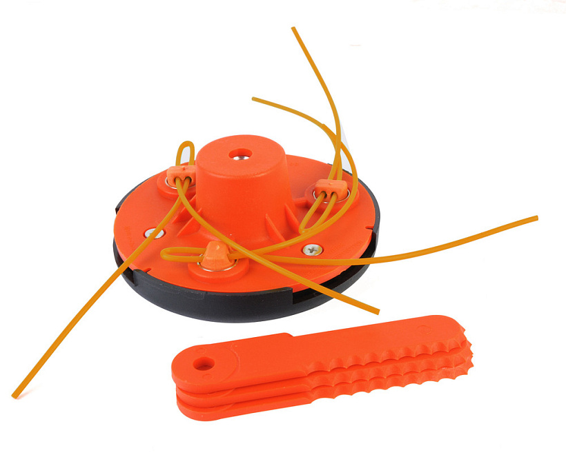 Благодаря трем плаcтиковым ножам позволяет скосить не только свежую и густую, но и старую залежавшуюся, особо жесткую траву, и даже ветки.Возможность работы леской и ножами в зависимости от степени сложности задач