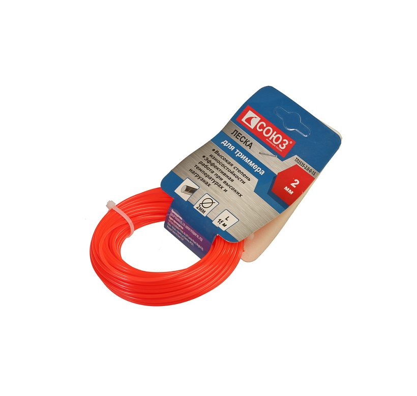 Леска для триммера, d=2.0 мм, l=15 м, КРУГ, оранжевый КАРТОН. СОЮЗ