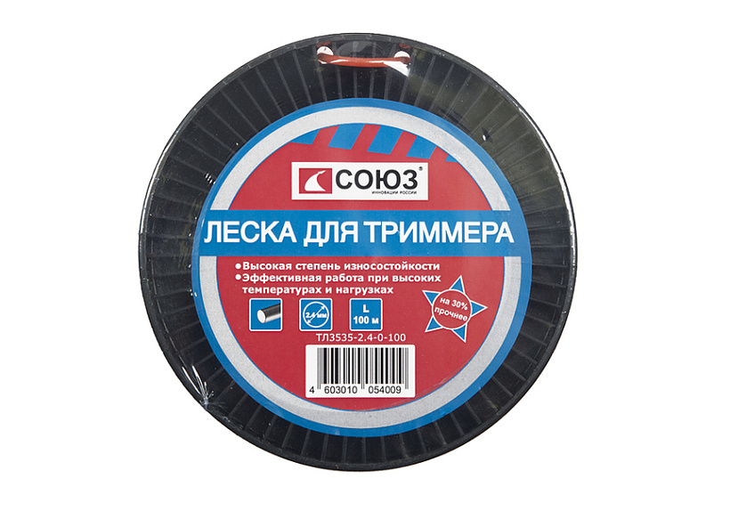 Леска для триммера, d=2.4 мм, l=100 м, КРУГ, оранжевый БАБИНА, СОЮЗ