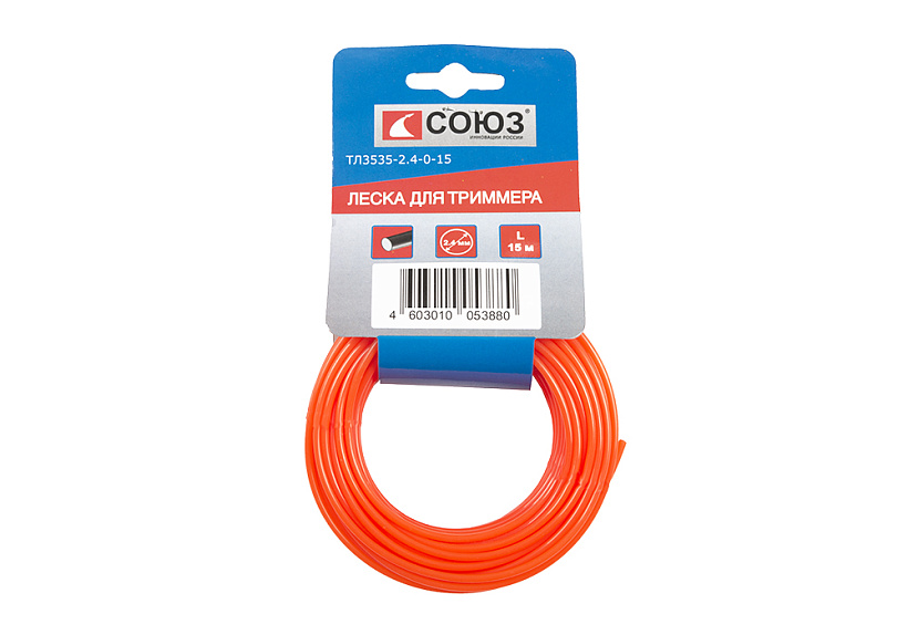 Леска для триммера, d=2.4 мм, l=15 м, КРУГ, оранжевый КАРТОН. СОЮЗ