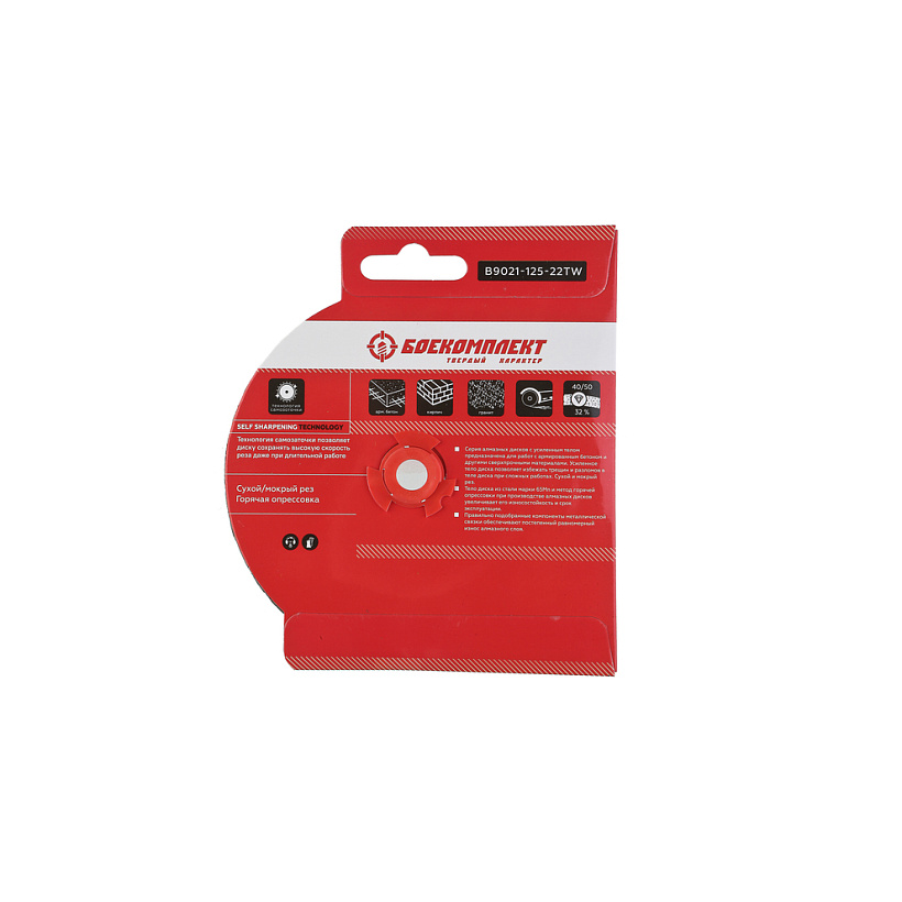 Высокое содержание алмазов и высота режущей кромки 10 мм увеличивают износостойкость и срок эксплуатации диска; технология самозаточки позволяет диску сохранять высокую скорость реза даже при длительной работе; тело диска из стали марки 65Mn для ровного реза, метод горячей опрессовки при производстве для наилучшей адгезии.