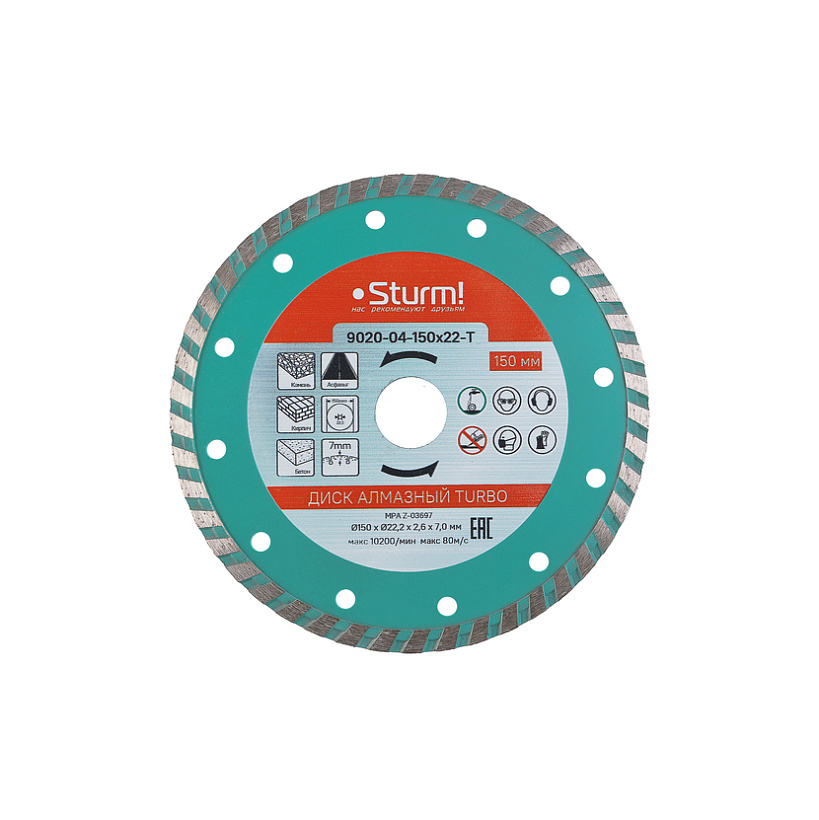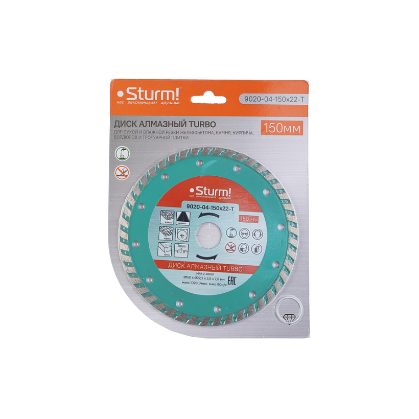 Алмазный диск, сухая резка, "Турбо" 150мм Sturm!