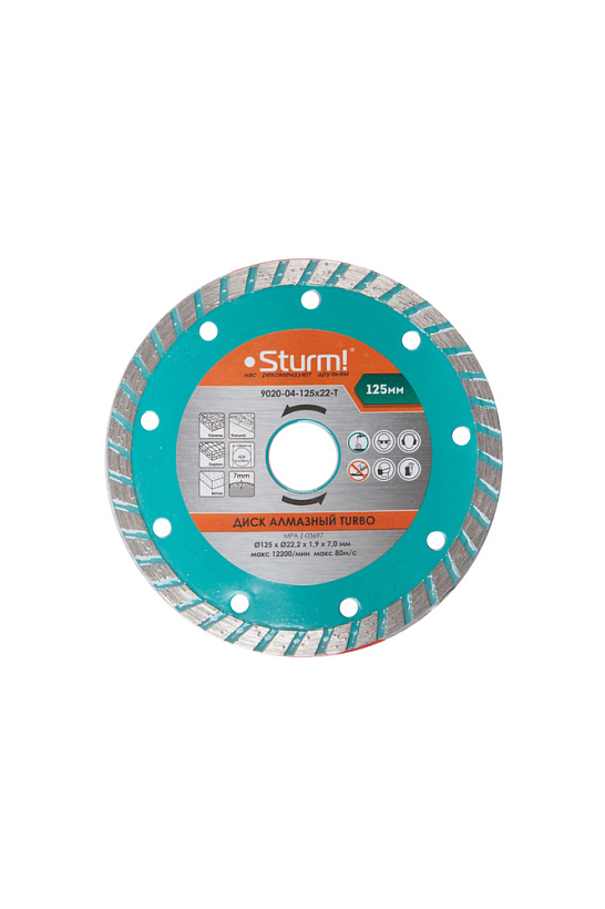 Алмазный диск, сухая/влажная резка, "Турбо" 125мм Sturm!
