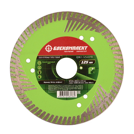 Алмазный диск 125x22,23 ТУРБО ГЛУБИНА, сухой рез, БОЕКОМПЛЕКТ