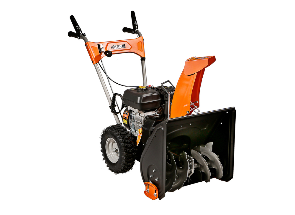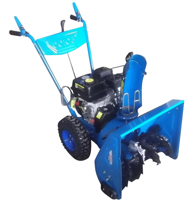 Зазубренный шнек первой ступени успешно измельчает слежавшийся снег и может справиться даже с настом толщиной до 2 см. Высокооборотистая вторая ступень снегоуборочного агрегата отбрасывает снег на расстояние до 12 м. Широкие колеса с развитым анти-снежным протектором позволяют уверенно двигаться по рыхлому снегу.