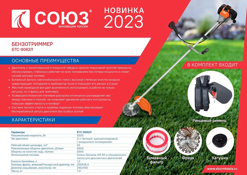 Триммер бензиновый СОЮЗ БТС-9062Л