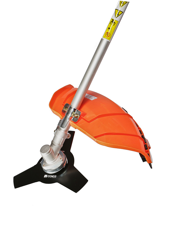 Универсальный защитный кожух подходит для использования с ножом-косой, которая облегчает срезание жестких зарослей, или кордовой головкой для травы. Заменить оснастку при этом можно просто и безопасно. Система легкого старта отвечает за бесперебойный запуск мотора без чрезмерного приложения усилий. Праймер подкачки топлива облегчает включение двигателя в сложных условиях. Наличие возвратного механизма стартера постоянно поддерживает инструмент в готовом к работе состоянии. Это обусловлено тем, что он автоматически приводит его в стартовое положение для быстрого последующего запуска.