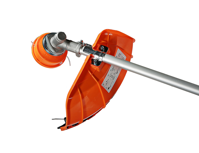 Универсальный защитный кожух подходит для использования с ножом-косой, которая облегчает срезание жестких зарослей, или кордовой головкой для травы. Заменить оснастку при этом можно просто и безопасно. Система легкого старта отвечает за бесперебойный запуск мотора без чрезмерного приложения усилий. Праймер подкачки топлива облегчает включение двигателя в сложных условиях. Наличие возвратного механизма стартера постоянно поддерживает инструмент в готовом к работе состоянии. Это обусловлено тем, что он автоматически приводит его в стартовое положение для быстрого последующего запуска.