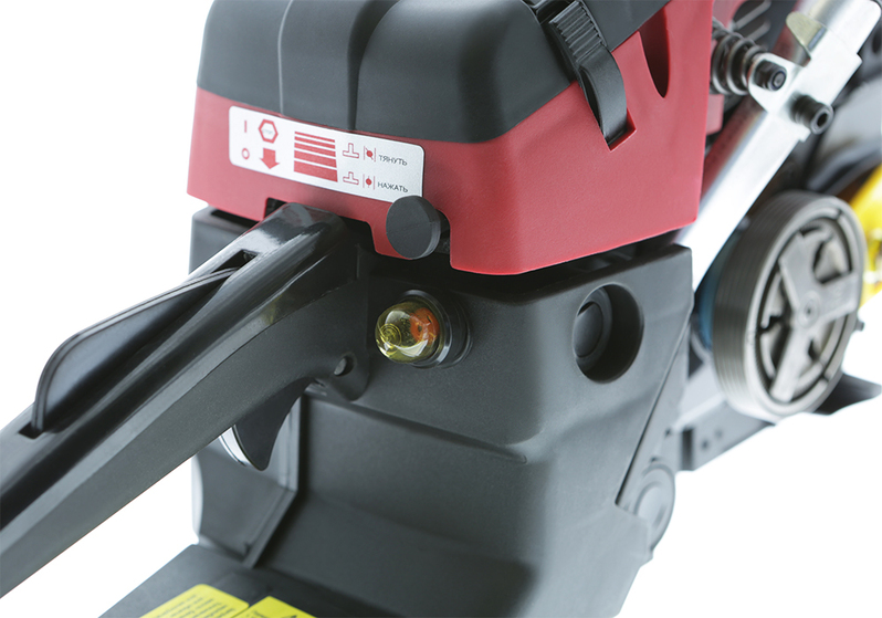В основе работы двигателя ДВС лежит преобразование энергии сгорания топлива в механическую энергию. Легкий старт обеспечивает бесперебойный запуск без особых усилий. Также предусмотрен праймер подкачки топлива. Благодаря ему можно завести не прогретый двигатель при любых условиях. Чтобы инструмент всегда был готов к работе, в его конструкции предусмотрен возвратный механизм стартера – он в автоматическом режиме приводит бензопилу в пусковое положение для быстрого запуска. При переводе инструмента в холостой режим масляный насос (регулируемый) приостанавливает смазку и позволяет настроить подачу масла. Усиленный картер двигателя и кованый коленчатый вал обладают высокой прочностью и долговечностью. Объем масляного бака составляет 0,26 л.