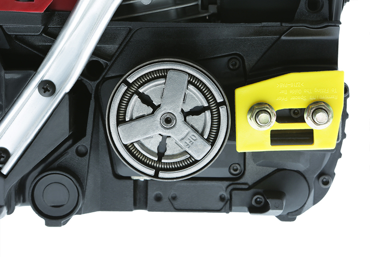 Для безопасности есть предохранительная клавиша, которая предотвращает случайное нажатие газа, ограничитель цепи, защитный щиток для правой руки и цепной тормоз – последние активируется силой инерции или в принудительном порядке. Антивибрационная система отвечает за эффективное поглощение вибрации, что немаловажно для здоровья оператора. Рукоятки с удобным расположением относительно центра тяжести делают бензопилу хорошо сбалансированной. За счет этого ею удобно управлять в любой ситуации. Благодаря быстросъемной крышке воздушного фильтра упрощается уход за ним, в частности, чистка и замена свечи и воздушного фильтра.
