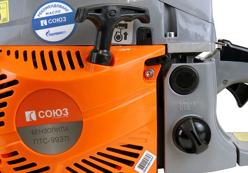 СОЮЗ ПТС-99371 — универсальная бензиновая пила для домашнего применения. Предназначена для работ по распилу древесины различной сложности и объема: от подрезания веток на садовом участке и вплоть до сезонной заготовки дров. Инструмент оснащен экономичным двухтактным двигателем рабочим объемом 38 см3, мощностью 2,0 кВт и 405 мм пильной гарнитурой, достаточной для выполнения большинства бытовых задач. Благодаря нейтральному центру тяжести, модель отлично сбалансирована, хорошо лежит в руках и имеет отличную маневренность, позволяя с легкостью выполнять распилы под разными углами. Относительно небольшая масса и многоточечная антивибрационная система, значительно снижающая передаваемую на руки вибрацию, способствуют меньшей усталости при длительных работах. Инструмент максимально прост в использовании и не вызовет затруднений у пользователей, не обладающими уверенными навыками работы с бензиновыми пилами. Этому способствует ряд современных опций: легкость запуска гарантирует система облегченного старта со специальной дополнительной пружиной, а наличие праймера позволяет уверенный пуск инструмента в условиях низких температур и после длительных перерывов в эксплуатации. За безопасность использования отвечает механический тормоз цепи, защищая пользователя в случае обратного удара. Возможность безынструментального доступа к карбюратору, фильтрующему элементу и свече зажигания обеспечивает удобство обслуживания пилы даже в самых неприспособленных условиях.