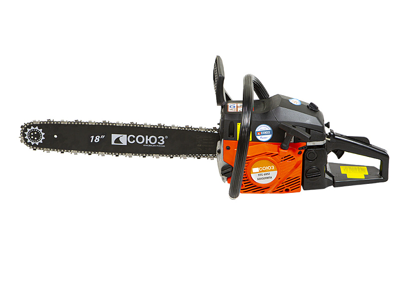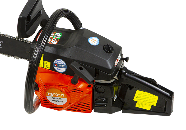 Бензопила СОЮЗ ПТС-9945. Практичная модель имеет прочную конструкцию и предоставляет оптимальную мощность для эффективной работы.