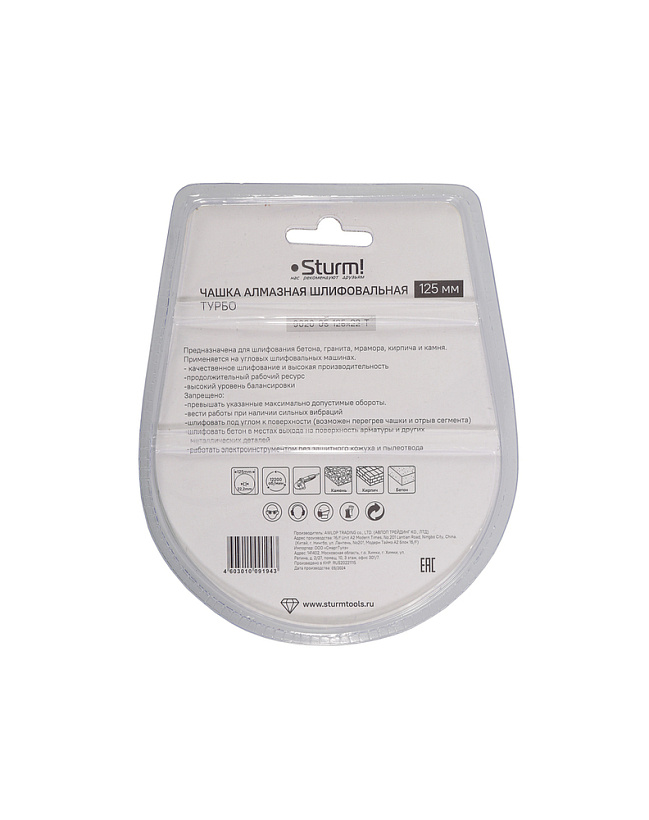 Чашка алмазная шлифовальная, 125x22мм, TURBO, 36 сегментов, Sturm!