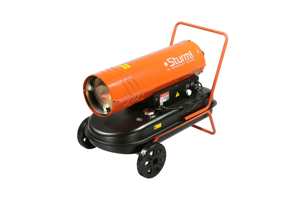 Тепловая дизельная пушка Sturm! DKH50 – мощный обогреватель с объемом бака 43 литров. Форма корпуса моделирует направленный горячий поток воздуха при обогреве нежилых помещений и открытых рабочих пространств даже в самых суровых климатических условиях. Уровень КПД прибора близок к 100%, а тепловая мощность достигает 50 кВт. Тепловая пушка оснащена встроенным термостатом повышенной чувствительности для работы в автономном режиме с поддержанием заданной температуры и цифровым дисплеем - указателем температуры. Теплоотражающий стальной экран поддерживает равномерный нагрев. Максимальная безопасность и контроль обеспечивается с помощью электронной платы управления, температурного датчика.