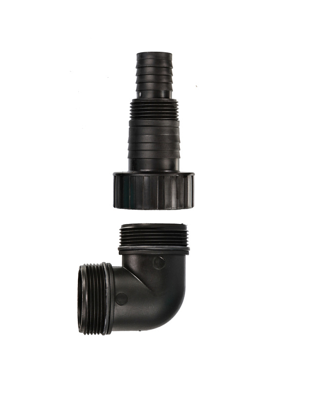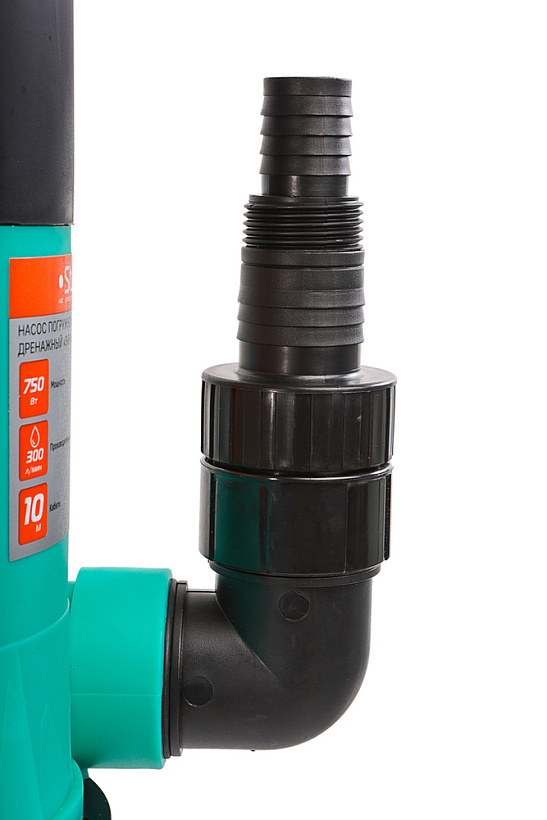 Универсальный фитинг в комплекте позволит использовать с насосом шланги и трубы различных диаметров.