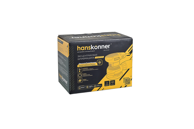 Hanskonner HOS8175MS – эксцентриковая шлифовальная машина под рабочий диаметр круга 125 мм. Предназначена для деликатного шлифования и полирования ровных и выпуклых поверхностей древесины, пластмассы, металла и т д. Модель обладает выверенными массогабаритными показателями и максимально приспособлена под управление одной рукой. Небольшие размеры шлифмашины позволяют уверенное ее использование даже в условиях с затрудненным доступом. Благодаря наличию обрезиненной накладки на корпусе достигается надежность хвата и лучший контроль, а малый уровень вибрации, передаваемый на руки, способствует комфорту при работе. Инструмент оснащен производительным 350 Вт электромотором, а также константной электроникой, предотвращающей снижение рабочих оборотов под нагрузкой – это способствует эффективной обработке материалов с повышенными требованиями к качеству. Оптимизированная внутренняя аэродинамическая схема и лабиринтная защита от пыли сохраняют мотор от перегрева и продлевают его срок службы. Шлифовальная машина Hanskonner HOS8175MS имеет электронную систему регулировки частоты вращения в диапазоне от 4000 до 12000 об /мин, что позволяет подбирать оптимальную скорость вращения подошвы в зависимости от типа обрабатываемой поверхности, а также систему плавного запуска SoftStart, предотвращающую резкие рывки при включении. Выключатель с фиксацией пусковой клавиши обеспечивает удобство при непрерывной работе, а также имеет пылезащиту, что положительно влияет на его ресурс. За счет применения системы крепления шлифовального круга с помощью липучки Velcro его замена становится проще и значительно быстрее. Конструкцией предусмотрена возможность установки пылесборника, либо подключения шлифмашины к строительному пылесосу. Сетевой кабель 4VelcroRubber имеет резиновую изоляцию, что сохраняет его гибкость и эластичность в условиях низких температур, а четырехметровая длина кабеля позволяет использовать инструмент без дополнительного сетевого удлинителя, обеспечивая рабочую зону площадью до 50 м2.