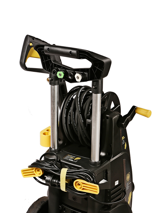 *Асинхронный двигатель - низкий уровень шума и увеличенный ресурс работы *Увеличенный до 10м эластичный шланг высокого давления на барабане позволяет свободно мыть автомобиль, чистить крыши дачных построек и другие объекты не передвигая мойку. Благодаря своей эластичности шланг легко разматывается и сматывается на барабан. *Профессиональный " пеногенератор объемом 1 литр в комплекте обеспечит качественное нанесение густой пены *Дополнительная роторная фреза TurboNozzle в комплекте для работы с сильными загрязнениями