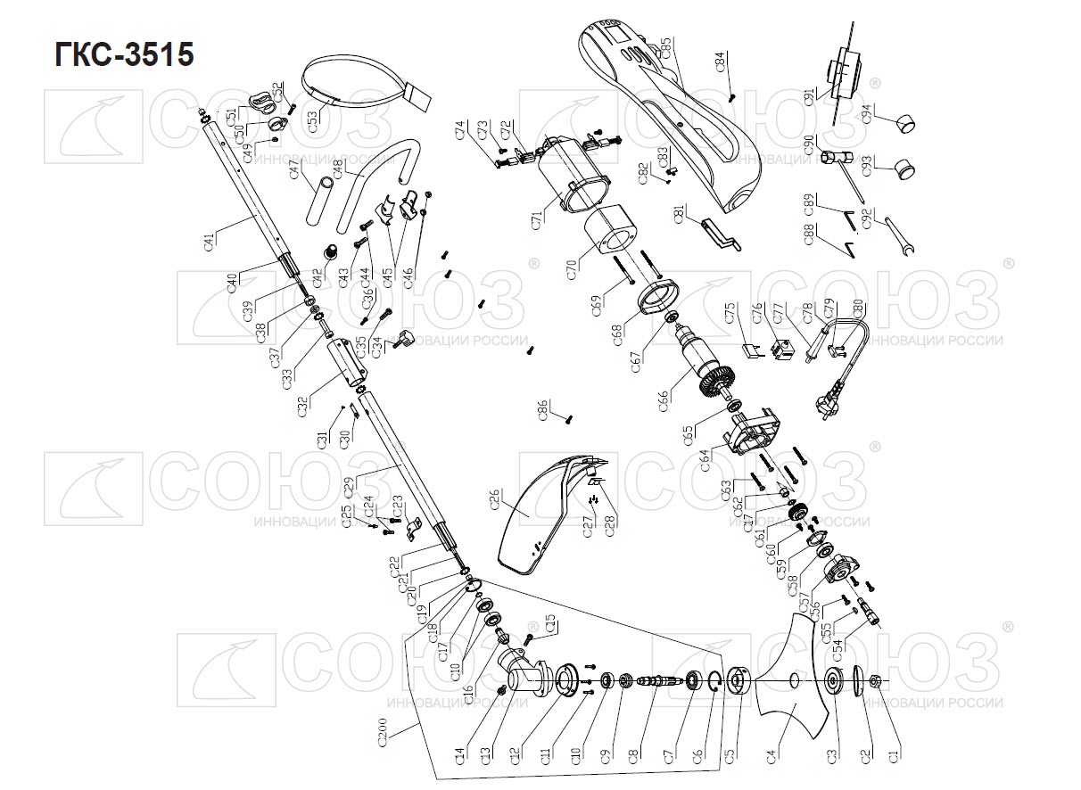 Защитный кожух предотвращает выброс травы и других предметов защищая оператора от травмирования и повышая безопасность.