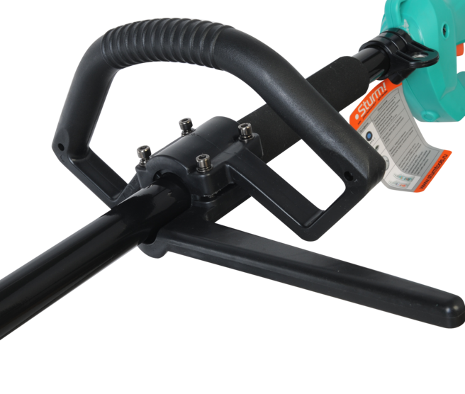 Sturm GT1800D – универсальная мощная электрическая коса для ухода за приусадебной территорией. Имеет компоновку с верхним расположением двигателя, что дает возможность применять ее для скашивания мокрой травы, так как исключается непосредственный контакт влаги с электрочастью. Кроме того, размещение мотора сверху обеспечивает инструменту отличную развесовку. Модель оснащена производительным 1.8 кВт мотором, развивающим максимальную частоту вращения режущей оснастки 7500 об / мин и позволяет уверенно использовать при работе режущую леску максимальным диаметром до 2.5 мм. Благодаря наличию стального приводного вала крутящий момент от двигателя к редуктору передается практически без потерь, что позволяет уверенно использовать не только стандартные косильные катушки, но и металлические трехлопастные ножи для скашивания жесткой, перезрелой травы и бурьяна. Инструмент максимально прост в использовании. Этому способствуют отличная эргономика и небольшой вес. Кроме того, в отличии от бензиновых аналогов, электрическая коса не требует предварительной подготовки (приготовление топливной смеси, заправка), работает без вредного выхлопа и с невысоким уровнем шума. Дополнительный комфорт при работе обеспечивает D-образная рукоять ¬– она позволяет лучше контролировать инструмент и легче обходить преграды. Предусмотрена возможность ее продольной регулировки. Для защиты пользователя от возможного случайного запуска инструмента, на корпусе установлена клавиша-фиксатор, блокирующая кнопку пуска – запуск возможен лишь после ее предварительного нажатия. Еще один элемент безопасности – специальный зацепной крюк в нижней части корпуса, предназначенный для надежной фиксации сетевого удлинителя к косе, чтобы в случае необходимости быстро отключить инструмент от электросети. В штатную комплектацию модели Sturm GT1800D входят катушка с леской, трехлопастной режущий нож, наплечный ремень и набор аксессуаров для сборки.