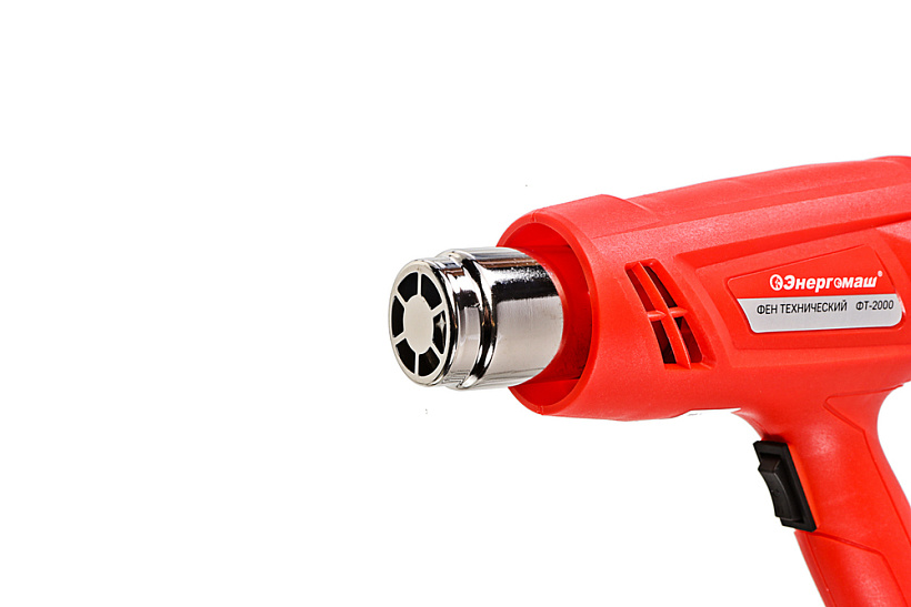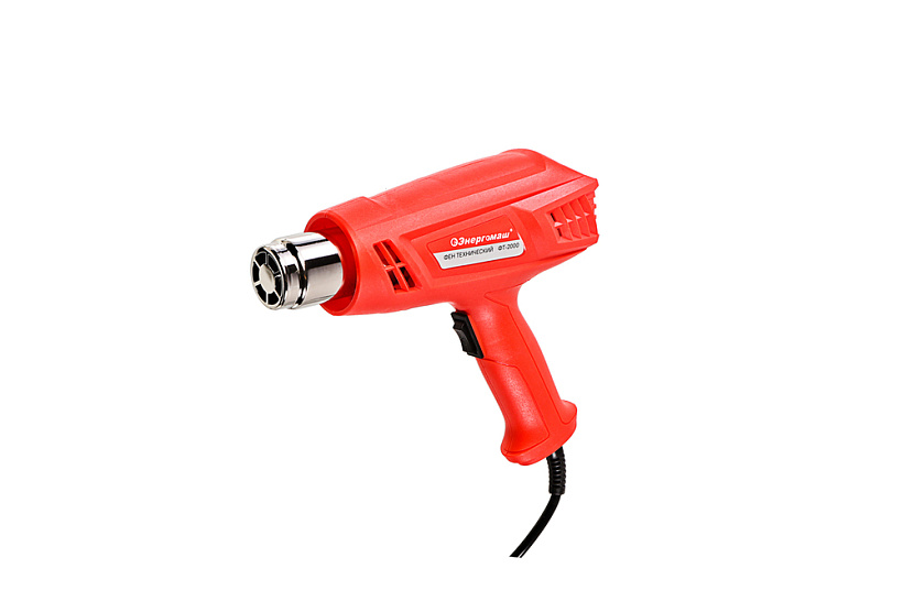 Энергомаш ФТ-2000 — надежный и простой в работе технический фен бытового назначения. Благодаря небольшой массе и компактным размерам модель обладает отличной маневренностью — уверенно контролируется и позволяет эффективное применение в условиях ограниченного пространства. Устройство может использоваться не только как мобильное, но и как стационарное — особая форма корпуса со специальной плоской основой дает возможность для большего удобства устанавливать фен в вертикальном положении. Инструмент имеет два рабочих температурных режима, которые совмещены с двумя скоростями воздушного потока: первый режим пониженной производительности обеспечивает максимальную температуру нагрева в 375°C при скорости выдува воздушного потока 300 л/мин, второй режим повышенной производительности — максимальная температура нагрева 495°C при скорости выдува воздушного потока 500 л/мин. Управление режимами происходит посредством специального переключателя. Для наиболее полного использования функционала в штатную комплектацию фена входят рефлекторное и редукционное сопла: рефлекторное сопло предназначено для разогрева пластиковых труб перед их изгибом в проектное положение в процессе монтажа, редукционное фокусирующее сопло применяется при точечной сварке, для герметизации стыков с помощью специальных наплавляемых лент, пайки медных труб и фитингов бесконтактным методом, при склеивании горячим способом любых материалов и в качестве переходника для фигурных или шлицевых насадок.