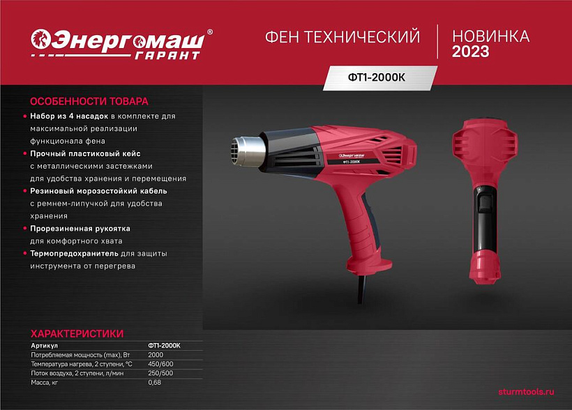 Фен технический Энергомаш ГАРАНТ ФТ1-2000К
