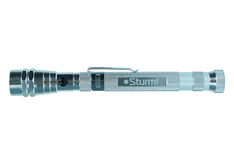 Яркость светодиодов увеличена на 50% по сравнению с аналогами. Гибкий наконечник на телескопическом стержне позволяет подсвечивать рабочую зону под разным углом и в труднодоступных местах.Прочный корпус из алюминиевого сплава оснащен обрезиненной кнопкой выключения и зажимом для переноски на ремне или в кармане.