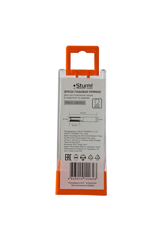 Фреза пазовая прямая с двойным лезвием dxhxl 10x25x62 мм, хв.8 Sturm!