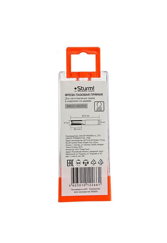 Фреза пазовая прямая с двойным лезвием dxhxl 12x25.4x60,4 мм, хв.8 Sturm!
