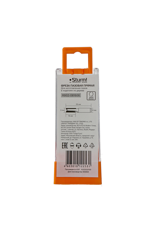 Фреза пазовая прямая с двойным лезвием dxhxl 6x16x53 мм, хв.8 Sturm!