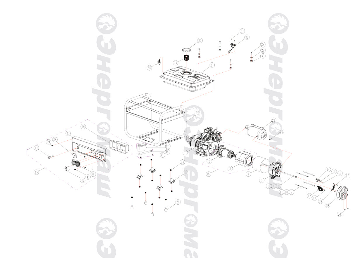 Прочный рамный каркас из закаленных труб защищает рабочие органы аппарата от механических воздействий и обеспечивают удобство перемещения и простоту установки. Система поддержания энергобезопасности автоматически отключает потребителей от генератора при возникновении короткого замыкания или перегрузки.
