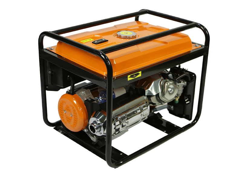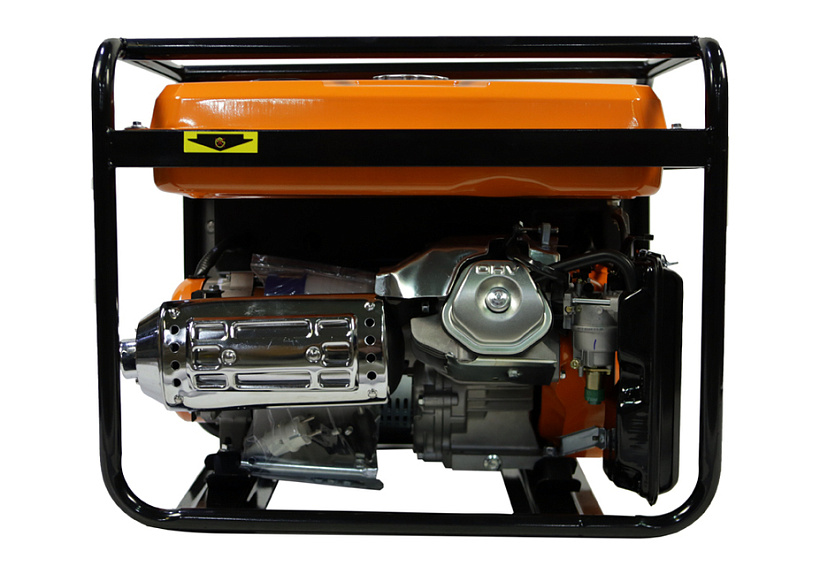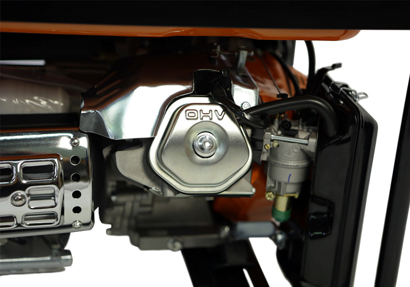 СОЮЗ ЭГС-6500Э – мощный универсальный однофазный бензиновый генератор для частного или производственного использования. Отлично подойдет для резервного электроснабжения загородного дома или организации удаленной рабочей площадки. Имеет классическую компоновку: двигатель и альтернатор смонтированы внутри прочной усиленной трубчатой рамы, страхующей узлы генератора, и бензобак от случайных повреждений, при транспортировке. Модель оснащается четырехтактным бензиновым двигателем 190F рабочим объемом 420 см3 с верхним расположением клапанов (OHV) и воздушным охлаждением. Благодаря ряду технических решений: коленчатому валу повышенной прочности, усиленной цилиндро-поршневой группе, чугунной гильзе цилиндра и ее алмазной хонинговке силовой агрегат надежен, и неприхотлив в использовании. Тип альтернатора – синхронный, с щеточно-коллекторным узлом. Синхронный альтернатор способен легко переносить индуктивные нагрузки и позволяет запитывать даже достаточно мощный строительный электроинструмент. За автоматическую стабилизацию выходного напряжения отвечает встроенная система AVR (Automatic Voltage Regulation). Для визуального контроля напряжения на панели размещен аналоговый вольтметр. Важная особенность модели СОЮЗ ЭГС-6500Э – система электрического запуска, за счет чего пуск бензогенератора максимально удобен и прост. В качестве альтернативы, можно задействовать и традиционный вариант запуска с помощью ручного стартера. Генератор имеет систему поддержания энергобезопасности, которая принудительно отключает агрегат при превышении допустимой нагрузки или коротком замыкании, а также оснащен системой аварийной остановки двигателя при критически низком уровне масла.