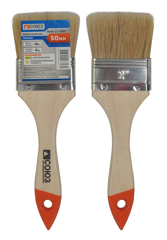 Кисть плоская "Практик" 2" (50мм), натуральная щетина СОЮЗ