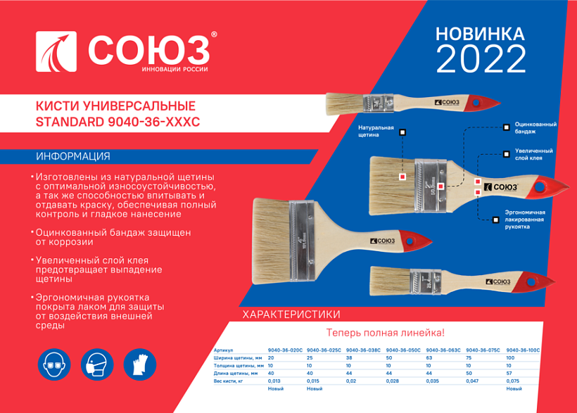 Кисть плоская Standard 1" (25 мм), натуральная щетина СОЮЗ