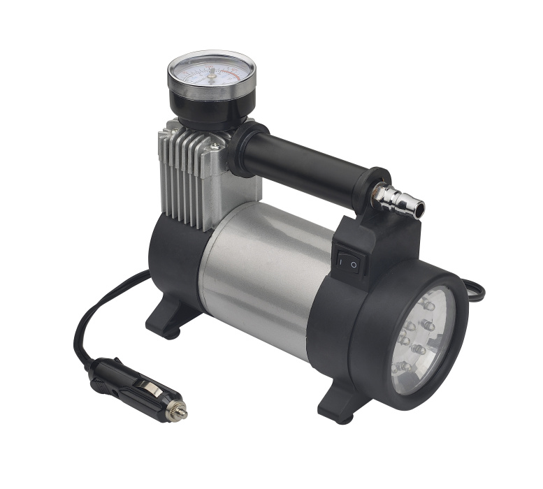 Благодаря металлическому цилиндру с ребристым радиатором охлаждения, стальному поршню и производительному двигателю обеспечивается более продолжительная работа компрессора, от 10 до 30 минут без перерыва, что позволяет накачивать изделия большого размера.