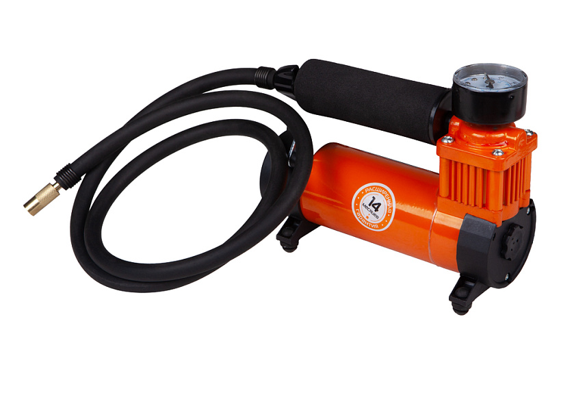 Компактный бюджетный компрессор с малым рабочим током 10А подключается в гнездо прикуривателя автомобиля.