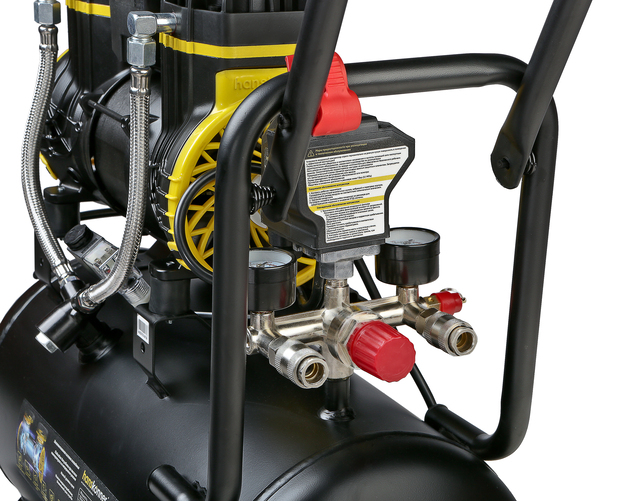 Hanskonner HAC241 - поршневой безмасляный компрессор нового поколения. Мощность данной модели составляет 1450Вт, производительность 240 л/мин, честный объем ресивера 24л., с максимальным давлением 8 бар.