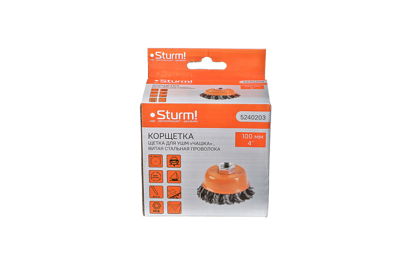 Корщетка Sturm! 5240201Используется для зачистки различных поверхностей с помощью угловой шлифовальной машины