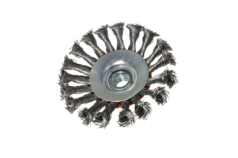 Корщетка-насадка является сменным элементом для УШМ. Применяется для зачистки от лака, краски и ржавчины различных поверхностей и изделий. Рабочая часть состоит из стальной витой проволоки.