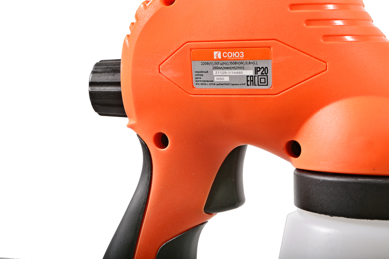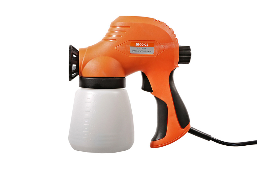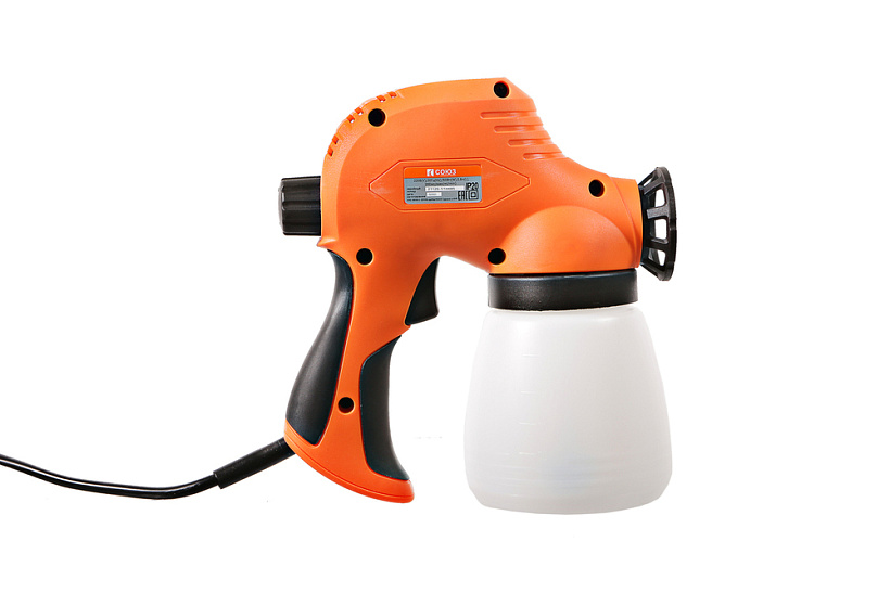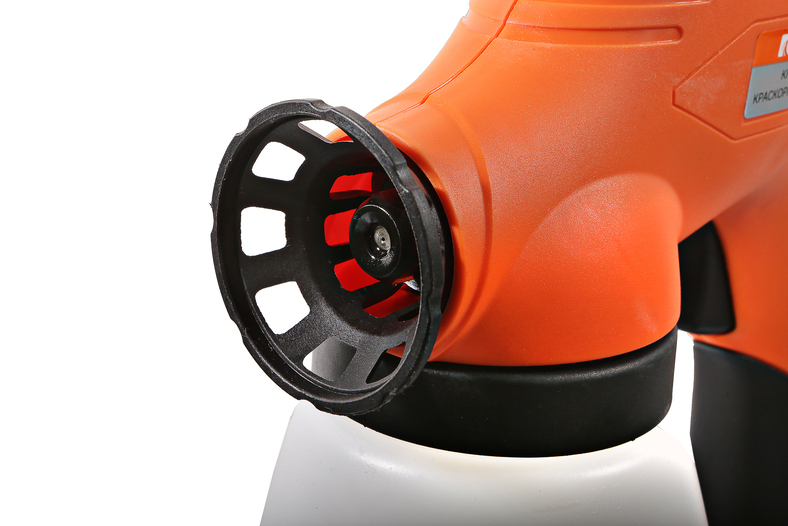 Нижнее расположение резервуара для краски и малый вес распылителя делает инструмент удобным при длительном использовании.