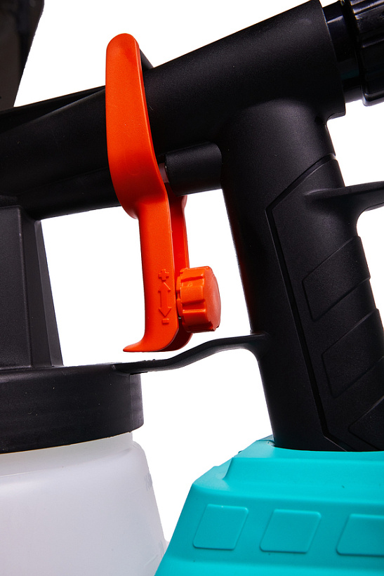 Краскораспылитель оснащен мощным 600 Вт электромотором, обеспечивающим высокую производительность (до 1100 мл / мин) и позволяющим эффективную работу с лакокрасочными материалами максимальной вязкостью до 50 DIN. Используемая технология покраски – HVLP (High Volume / Low Pressure) – характеризуется большим объемом воздуха и низким давлением – данное техническое решение гарантирует равномерное нанесение лакокрасочного материала, способствуя более высокому проценту его переноса на поверхность заготовки. Притом, потери на разбрызгивание и образование тумана остаются на минимальном уровне. В случае необходимости пользователь может настроить оптимальный для себя расход краски, а также установить нужный тип распыляемой струи: горизонтальный, вертикальный или круговой для комфортной работы в горизонтальной или вертикальной плоскостях.