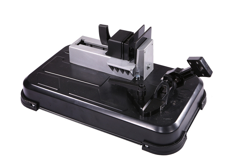 Также пила обеспечена металлическим столом, позволяющим выбрать требуемый угол пиления, и быстрым зажимным механизмом, способным уверено фиксировать заготовку.