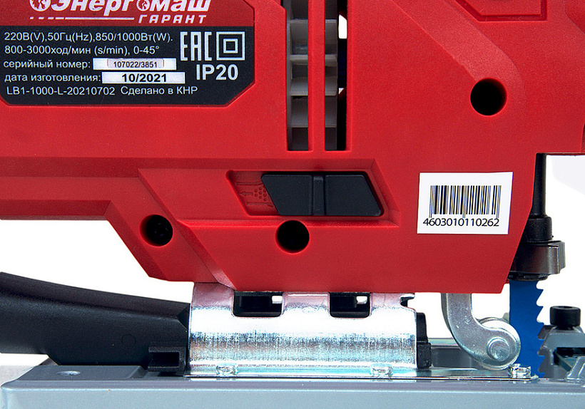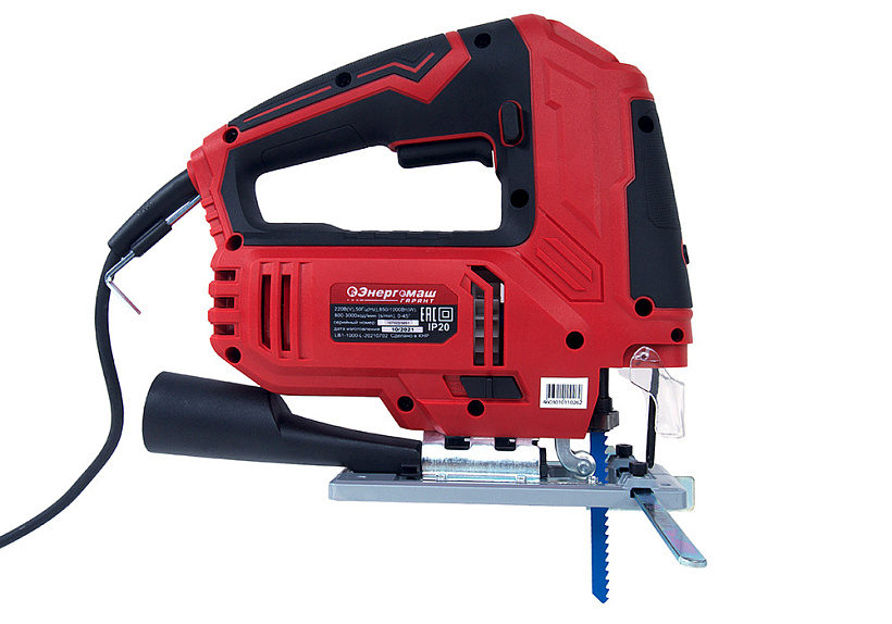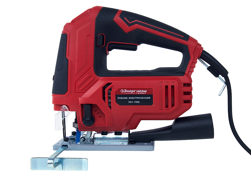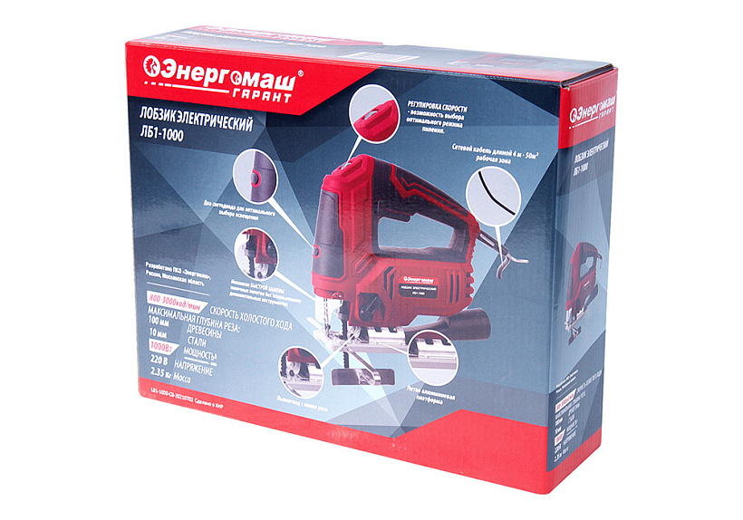 Энергомаш ГАРАНТ ЛБ1-1000 –  универсальный и производительный электрический лобзик. Характеризуется небольшими массогабаритными показателями и выверенной эргономикой – надежен в хвате и отлично контролируется. Модель оснащена 1000 Вт электромотором и мощной механической частью, позволяющими реализовать высокие показатели по максимальной глубине пропила: до 100 мм в древесине и до 10 мм в металле. Благодаря цилиндрическому штуку и направляющим, способствующим повышенной точности пропила, лобзик отлично подойдет для деликатных работ. Применение в конструкции литой, алюминиевой подошвы, стойкой к износу и деформации, обеспечивает максимально ровный пропил и лучшую стабильность инструмента. Наиболее точно настроить лобзик применимо к конкретному материалу, позволяет электронная регулировка количества ходов штока в широком диапазоне (800 ¬– 3000 ход / мин), а также функция маятникового хода с четырьмя режимами – пользователь выбирает необходимый режим работы с упором на максимальную производительность, либо максимальное качество реза с наименьшим количеством сколов. Для удобства пользователя, Энергомаш ГАРАНТ ЛБ1-1000 получил механизм безынструментальной замены пильного полотна и LED подсветку рабочей зоны. Дополнительный комфорт при работе обеспечивает система удаления пыли непосредственно с линии реза, способствующая максимально эффективному очищению рабочей зоны. Наличие длинного четырехметрового сетевого кабеля дает возможность использовать инструмент без применения дополнительного сетевого удлинителя, гарантируя рабочую область площадью до 50 м2.